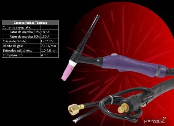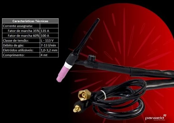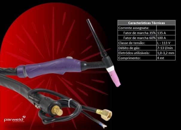 Tocha para soldadura TIG, da Parweld - arrefecimento natural;