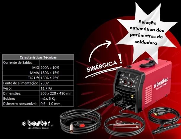 Máquina de soldar multiprocesso sinérgica, da Bester (Lincoln Electric);